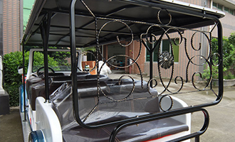 經典復古老爺車節能環保,美觀大氣事業開闊噪音小。 復古歐式工藝窗花飾件,防水帆布頂棚,噴粉工藝扶手,防銹能力優異。
