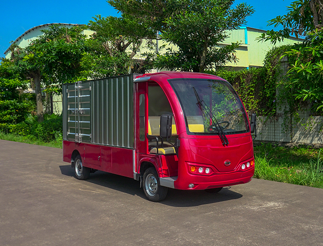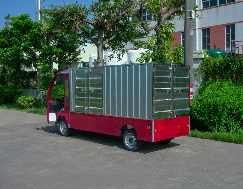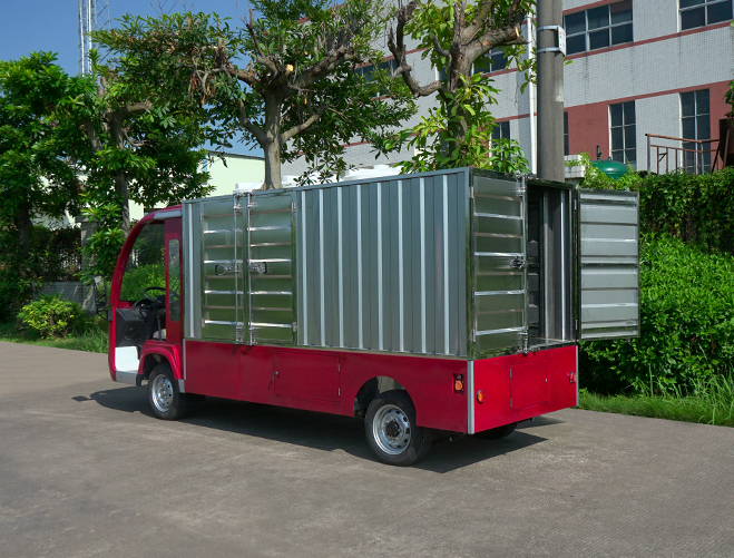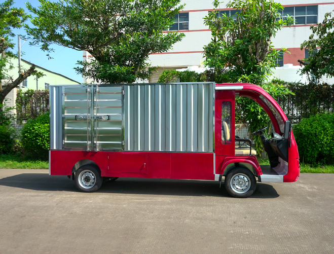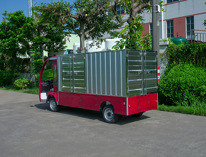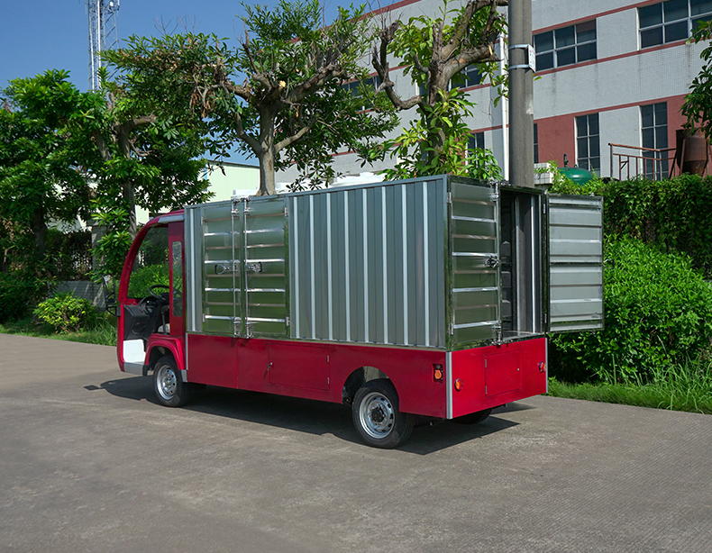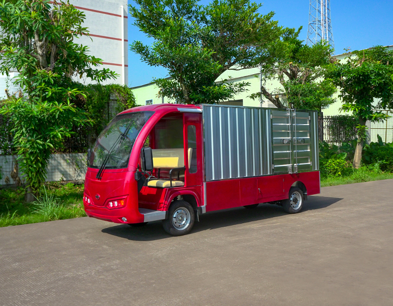 T14B-S深紅色廂式封閉貨車四輪電瓶觀光車廠內轉運車定制平板拉貨車